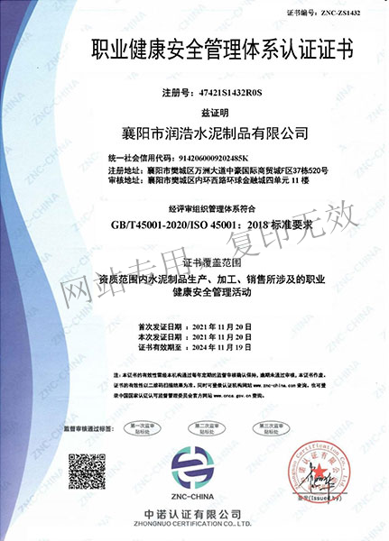 職業(yè)健康安全管理體系認(rèn)證證書(shū)